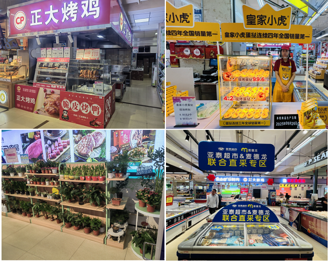 亚泰超市丰富自营项目,现场制作烤鸡、蛋挞,补充直采花卉和麦德龙联合直采商品