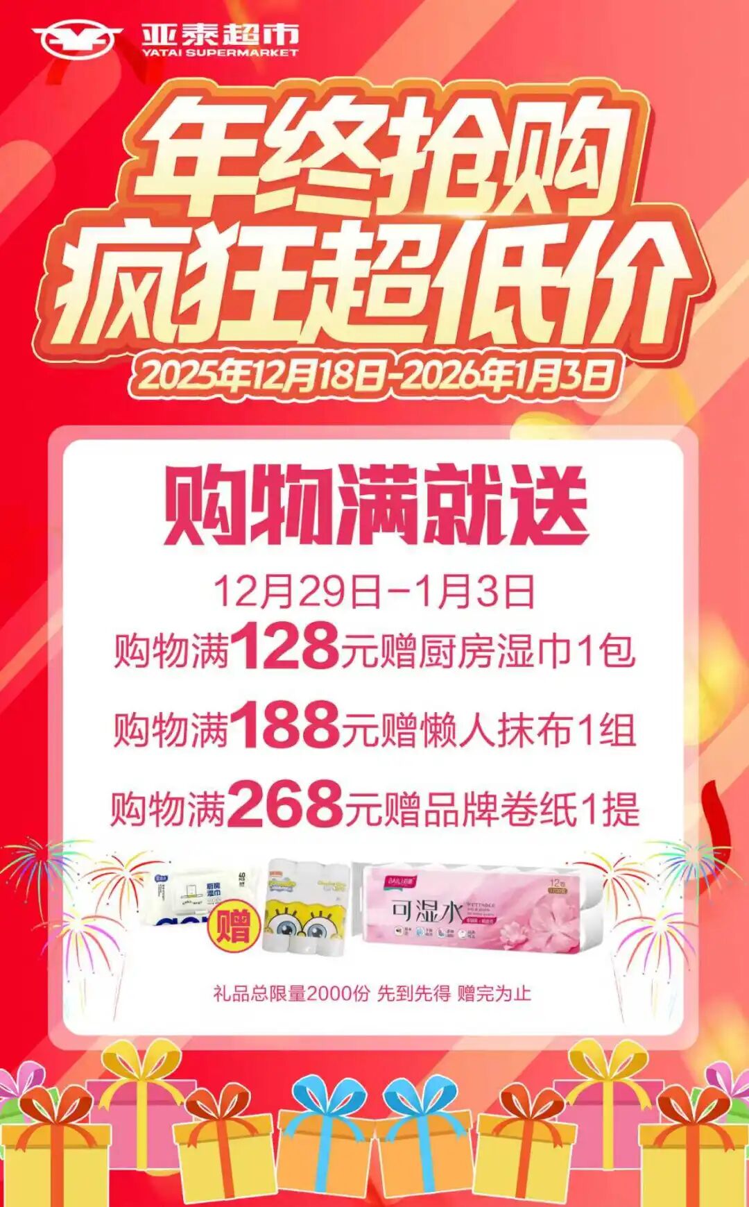 亚泰超市 购物满指定金额 赠好礼!