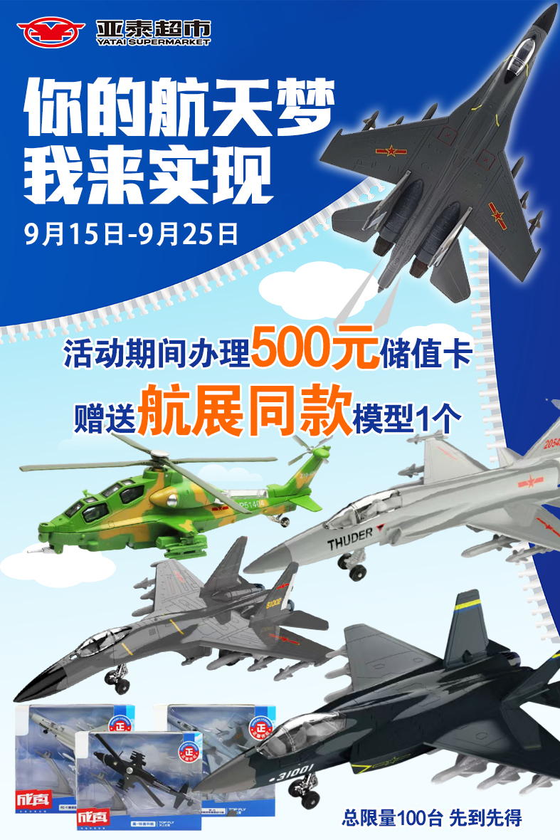 办理500元储值卡 送航展同款模型